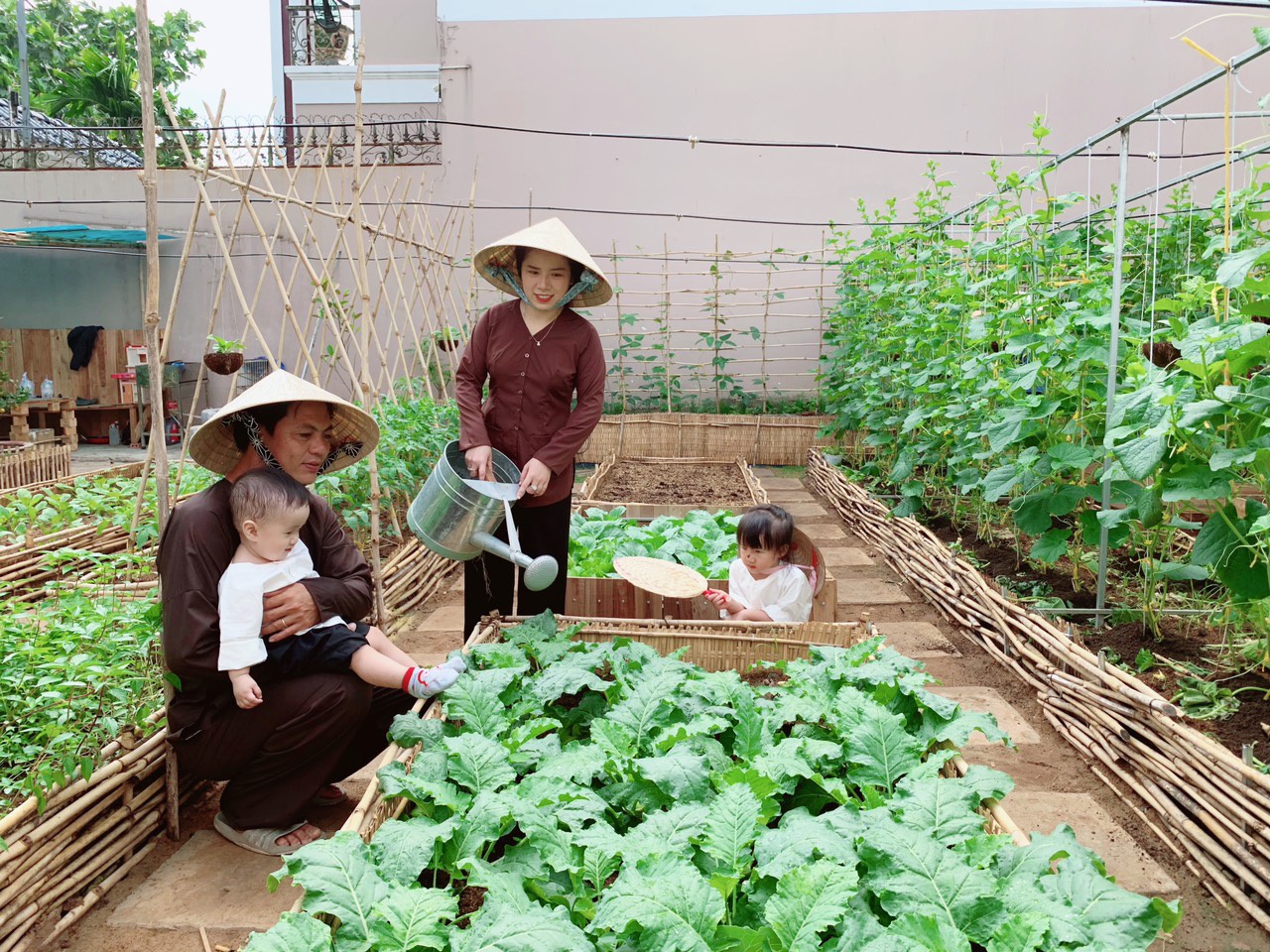 “Thật ra tôi đã dự định cải tạo lại khu vườn này từ lâu, nhưng công việc khá bận nên chưa có thời gian làm. thời kì gần đây, do ảnh hưởng bởi dịch Covid nên công việc cũng rảnh hơn và tôi bắt đầu thực hành việc cải tạo lại khu vườn này, để có rau sạch cho gia đình, có không gian cho các bé trong nhà vui chơi trải nghiệm, và đặc biệt có chỗ cho mẹ tiến thoái để đỡ nhớ quê nhà”, chị Huyền san sớt.